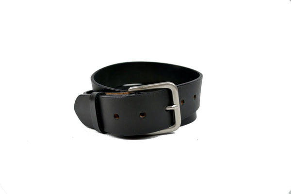 Our 1.5” wide belts are made from vegetable tanned bridle leather and come with a nickel plated solid brass buckle. Leather keeper. Black belts have black edge finish. Natural belts are left natural so they can burnish naturally with use. Made in USA.