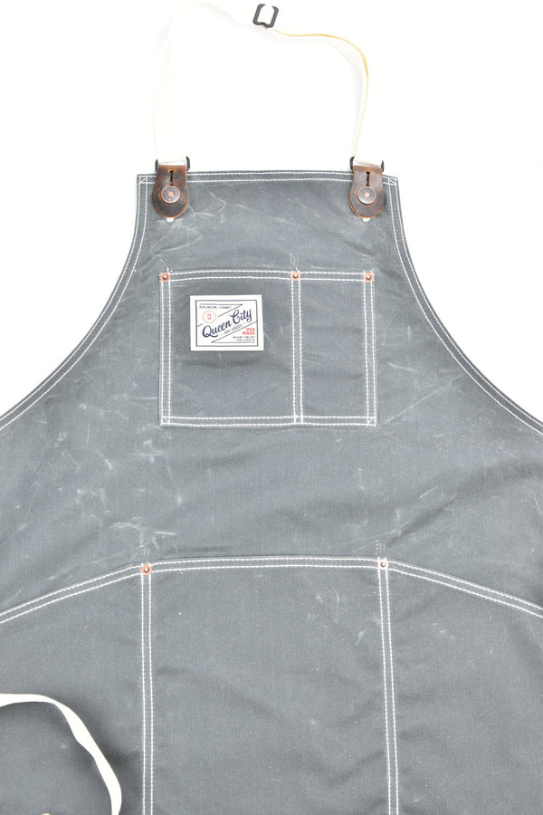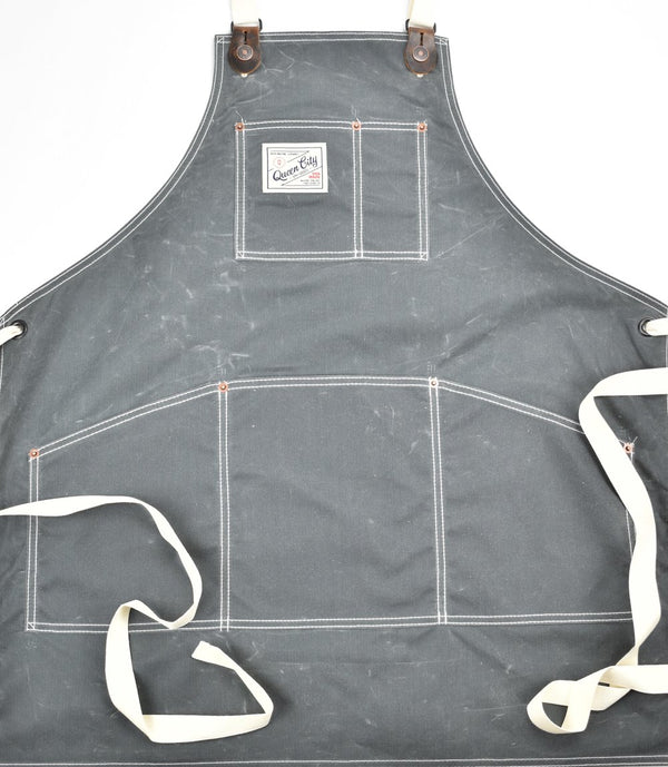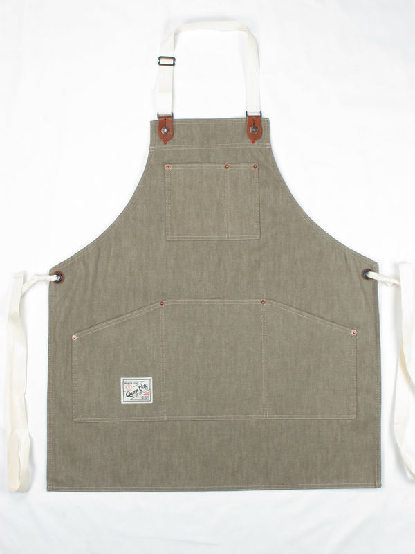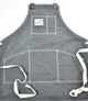 Our durable denim apron will hold up to years of use in the shop, studio or kitchen. The shoulder straps feature original leather tab attachment, which can be removed for laundering. Pockets are reinforced with double row stitching and antique copper jean rivets. Made in USA.