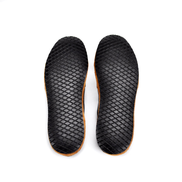 Turn your house shoes into street shoes. We will add a 5mm thick black, rubber sole with a light diamond tread pattern to the bottom of your shoes before we ship them out. Rubber soles are made in the USA!